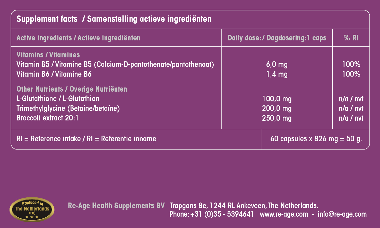 ✓ Bevat onder andere vitamine B5 & B6 en Broccoli-extract